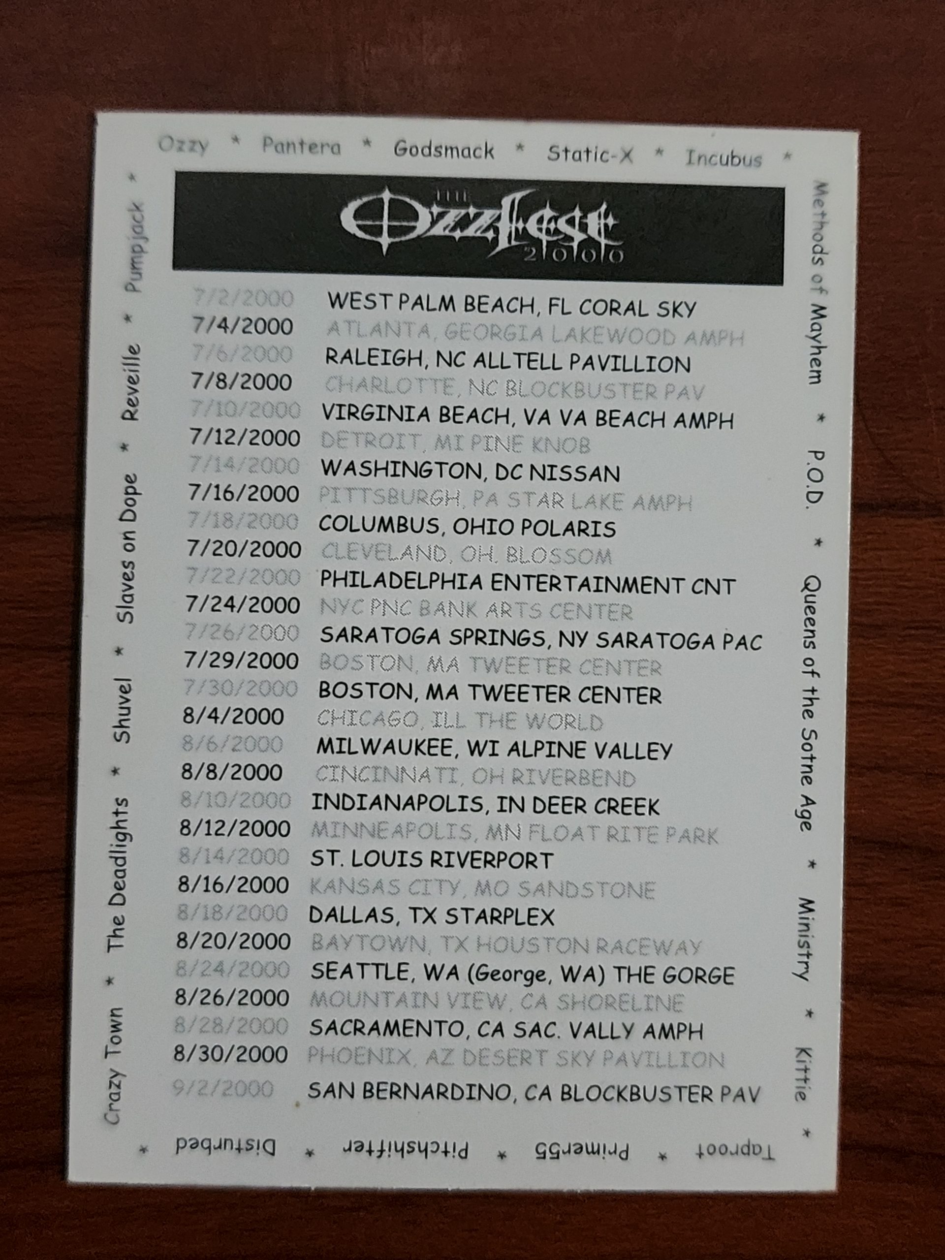 Ozzfest 2000 Card